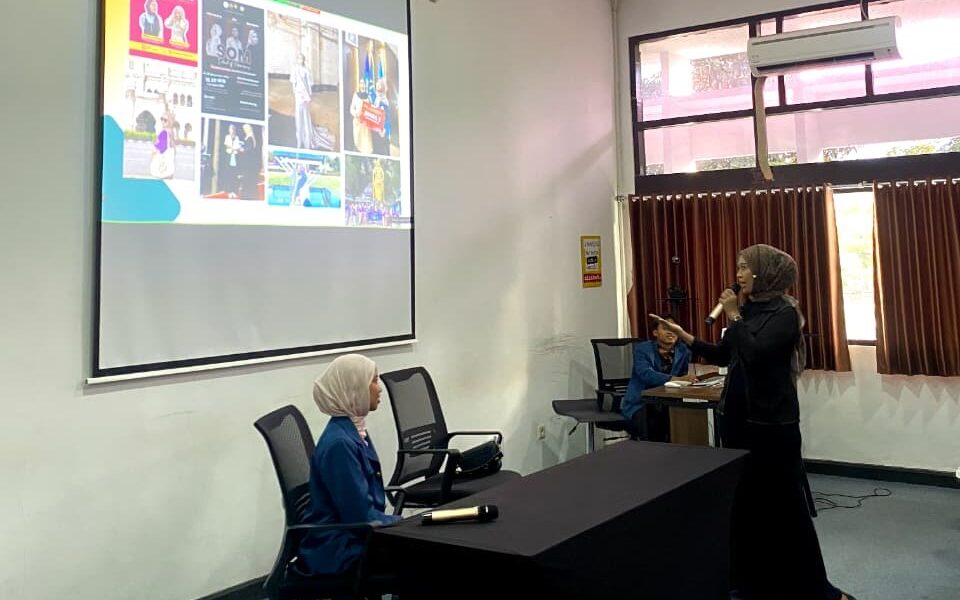 Sharing session berlangsung di ruang M201 Kampus Mojo, Kamis (12/03/2026) bersama 50 mahasiswa perwakilan BEM, BLM, HMKH, BPHA, HIMAKUA, HMKU, Garuda Sakti, AUBMO, KKI, KSR PMI, KOMALIMA, UKM Pecinta Alam, Panahan, dan Bola Voli. Agenda ini dirancang untuk membekali mahasiswa dengan strategi komunikasi publik dan pembangunan citra diri profesional langsung dari praktisinya.