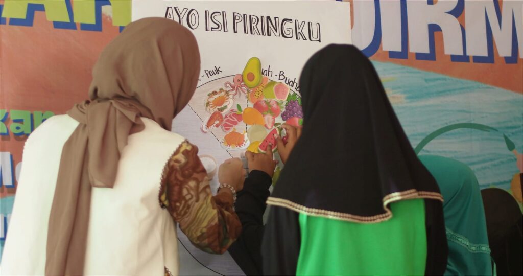 Pada hari kedua, kegiatan berfokus pada pengenalan konsep gizi seimbang melalui program “Isi Piringku.” Anak-anak diajarkan bahwa satu piring makanan seimbang terdiri dari 50% buah dan sayur, serta 50% sisanya terdiri dari karbohidrat dan protein. Pembagian ini meliputi 1/2 piring berisi sayur dan buah dengan beragam, 1/4 piring diisi dengan protein (seperti ikan, ayam, atau kacang-kacangan), dan 1/4 piring lagi dipenuhi dengan karbohidrat dari biji-bijian utuh, nasi merah, gandum utuh, atau pasta. Tak lupa, tambahan susu juga penting untuk menyeimbangkan gizi dalam makanan.
