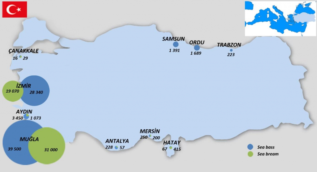 Gambar 1. Distribusi farm ikan sea bass dan sea bream di Turki (Turkstat, 2016)