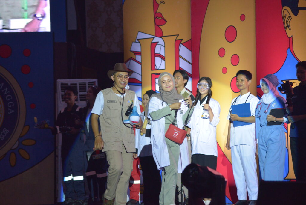 Penampilan devile perwakilan 17 fakultas dan sekolah di atas panggung ikut menjadi perhatian. Akbar (KH 2022) dan Lailatu Rohmah (Kesmas 2021) dipercaya menjadi representasi profesi mewakili Prodi yang ada di FIKKIA.
