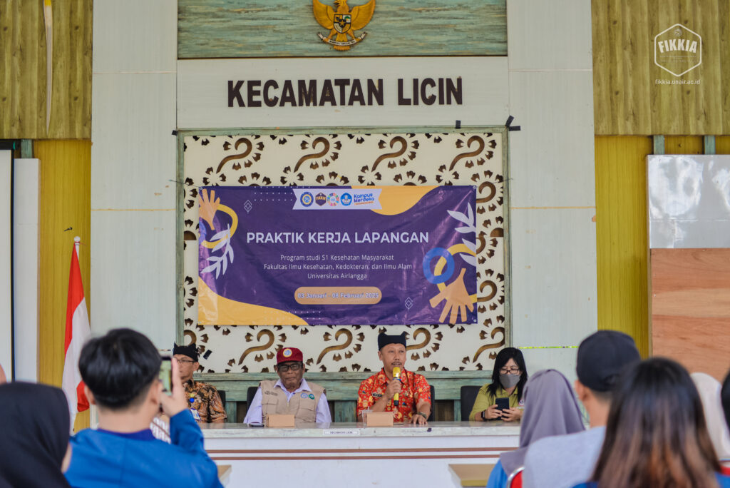 KABAR FIKKIA – Fakultas Ilmu Alam, Kedokteran, dan Ilmu Alam (FIKKIA) Universitas Ailanggga menggelar pelepasan PKL mahasiswa Prodi Kesehatan Masyarakat Semester 5. Awal tahun 2025 menjadi momen penting bagi mahasiswa pertamakalinya terjun melayani masyarakat. Khususnya bidang kesehatan. Pelepasan tersebut diikuti 42 mahasiswa bersama koordinator lapangan desa, Kepala Dinas Kesehatan Banyuwangi, beserta KPS dan Dosen Kesehatan Masyarakat pada Jumat (3/01/2025) di Kantor Kecamatan Licin.