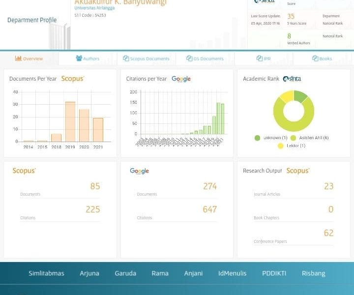 Read More[ad_1] Profil capaian publikasi prodi @akuakultur.unairbwi berdasarkan https://www.sinta.ristekbrin.go.id/departments/detail?afil=380&id=54253&view=overview dengan 85 artikel terindeks scopus (Q4-Q1) dengan 225 sitasi , 274 artikel terindeks google schoolar dengan 647 sitasi. Capaian ini dicapai hanya dengan 8 authors staf dosen @akuakultur.unairbwi Semoga membawa kemajuan untuk dunia keilmuan… Aamiin. . Program Studi S1 Akuakultur PSDKU UNAIR Banyuwangi . Jl. Wijaya Kusuma […]