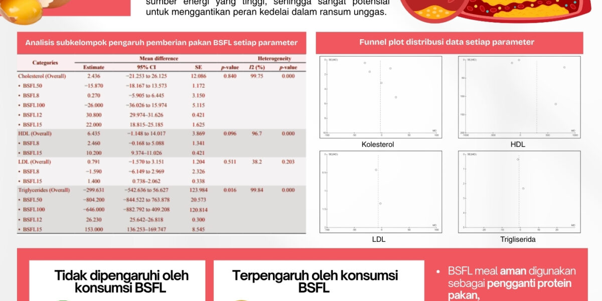 Read MoreTelur merupakan sumber protein hewani penting dengan kandungan gizi lengkap, termasuk senyawa bioaktif yang berperan dalam menjaga kesehatan. Seiring meningkatnya produksi dan konsumsi telur global, industri perunggasan masih sangat bergantung pada bungkil kedelai sebagai sumber protein utama pakan ayam petelur. Ketergantungan ini mendorong pencarian bahan pakan alternatif yang lebih berkelanjutan dan tidak bersaing dengan pangan […]