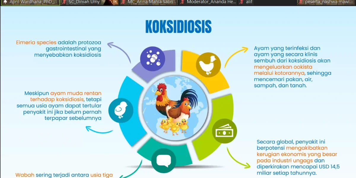 Read MoreKABAR FIKKIA – Minggu (13/10/2024), Divisi Fowl Care dari Himpunan Mahasiswa Kedokteran Hewan (HMKH) Fakultas Ilmu Kesehatan, Kedokteran dan Ilmu Alam (FIKKIA) Universitas Airlangga menyelenggarakan kuliah tamu dengan tema mengenal penyakit coccidiosis sebab infeksi parasit Eimeria spp. dan pencegahannya. Kuliah tamu ini dilaksanakan secara daring via Zoom. Kuliah tamu dihadiri kurang lebih 150 peserta yang […]