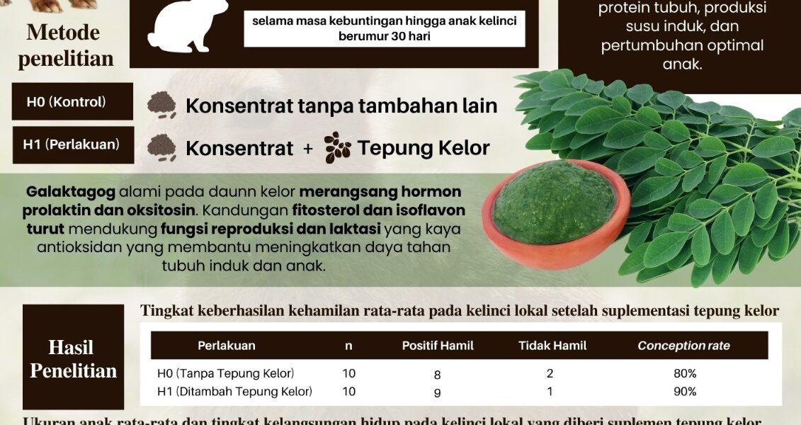 Read MoreDaun kelor dikenal kaya nutrisi dan mengandung senyawa alami yang dapat membantu meningkatkan produksi susu melalui kerja hormon oksitosin dan prolaktin. Penelitian ini meneliti manfaat daun kelor pada kelinci lokal, khususnya terkait kebuntingan, jumlah anak yang dilahirkan, dan daya hidup anak kelinci hingga usia 30 hari. Hasilnya menunjukkan bahwa pemberian daun kelor tidak banyak memengaruhi […]