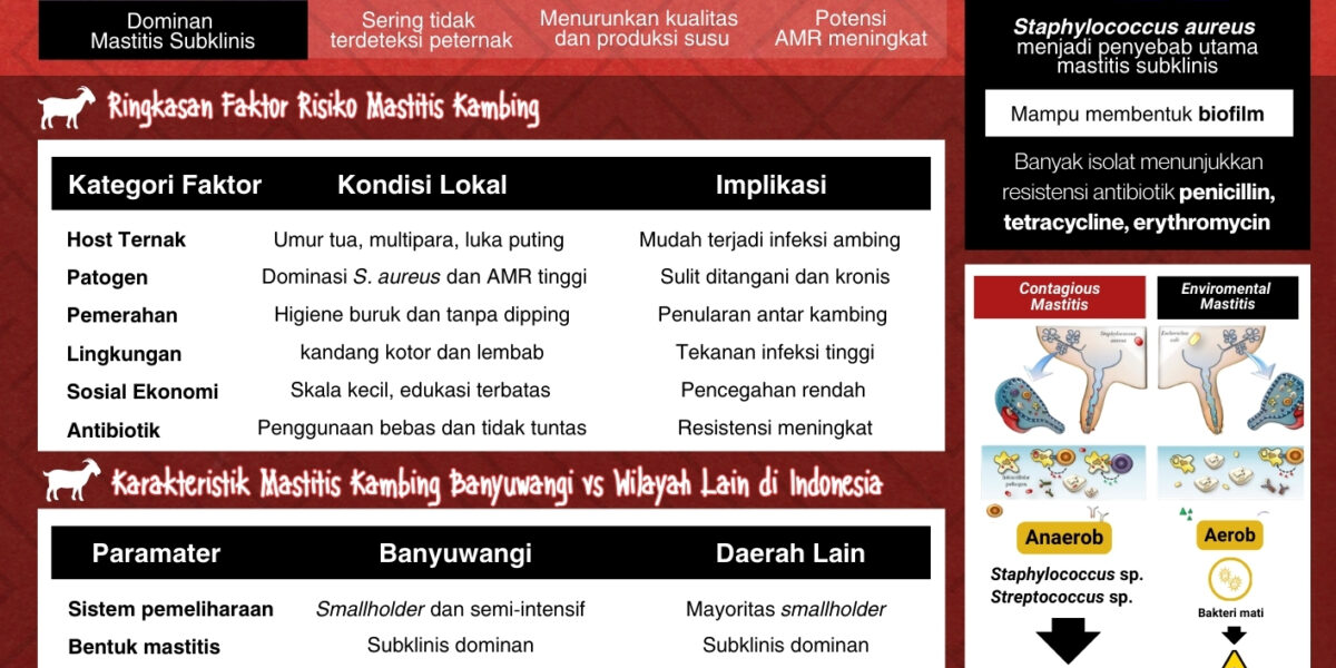 Read MoreMastitis di Banyuwangi disebabkan oleh kombinasi faktor lingkungan, manajemen, dan sosial-ekonomi. Pada musim hujan, kandang yang lembap dan alas tidur basah meningkatkan kontaminasi ambing serta melemahkan kulit puting, membuatnya lebih rentan terhadap infeksi. Sebagian besar peternak skala kecil dengan sumber daya terbatas, sehingga pengelolaan mastitis sering bersifat reaktif. Kurangnya pengetahuan tentang mastitis subklinis, SCC, dan […]