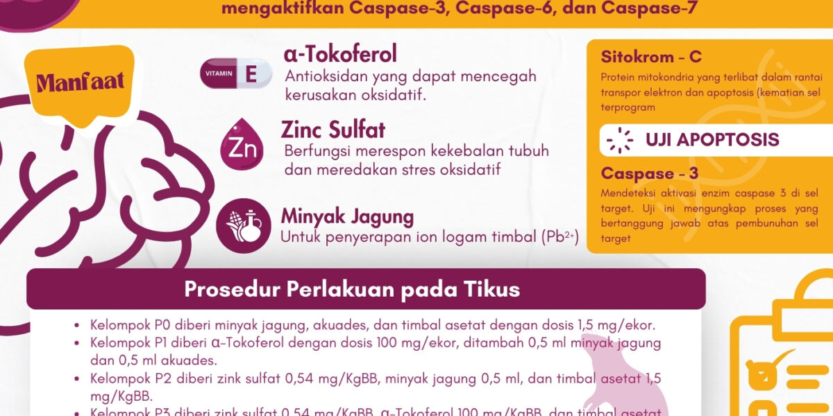 Read MorePenelitian ini bertujuan untuk mengevaluasi potensi efek perlindungan α-Tocopherol (salah satu bentuk vitamin E) dan zinc sulfate terhadap perubahan kadar Cytochrome C dan Caspase-3, yang merupakan biomolekul penting yang terlibat dalam apoptosis (kematian sel terprogram), di dalam jaringan otak Tikus dengan mutasi albinisme (Rattus norvegicus) yang diberi paparan timbal asetat (Pb(C2H3O2)2). Jenis penelitian ini adalah […]