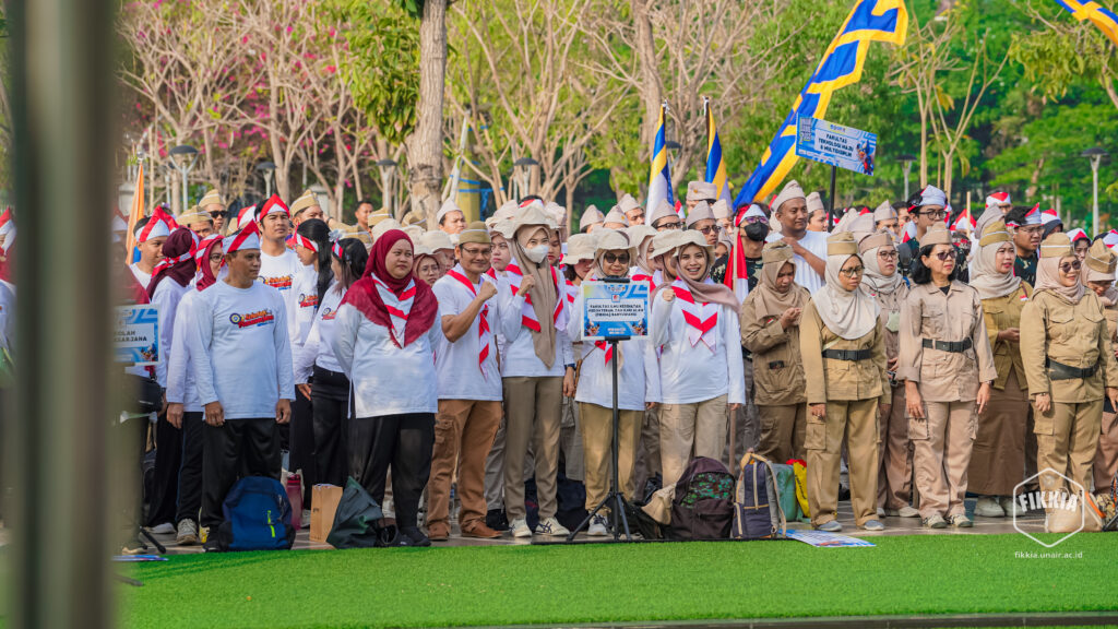 KABAR FIKKIA – Memperingati Hari Pahlawan, segenap civitas akademik Fakultas Ilmu Kesehatan, Kedokteran, dan Ilmu Alam (FIKKIA) ikuti upacara bendera di halaman Rektorat Universitas Airlangga Kampus Merr-C Surabaya. Upacara pada Minggu (10/11/2024) diikuti oleh perwakilan dosen dan tenaga kependidikan dari seluruh fakultas, unit, dan bidang di kampus Universitas Airlangga. Seluruh peserta upacara mengenakan kostum Bung Tomo dan kostum tema perjuangan lengkap dengan aksesoris pendukung lainnya sebagai lambang semangat perjuangan. Upacara tersebut sekaligus memperingati dies natalis ke-70 UNAIR yang bertepatan dengan Hari Pahlawan 10 November.