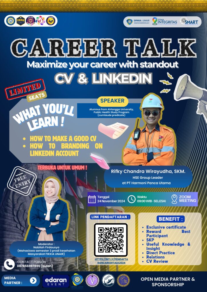 Career Talk 2024 hadir untuk membantu kamu, calon profesional muda, mempersiapkan CV, Resume, Portfolio, hingga profil LinkedIn yang standout! Career Talk 2024 adalah kesempatan emas buat kamu yang ingin siap berkompetisi di dunia kerja! π―