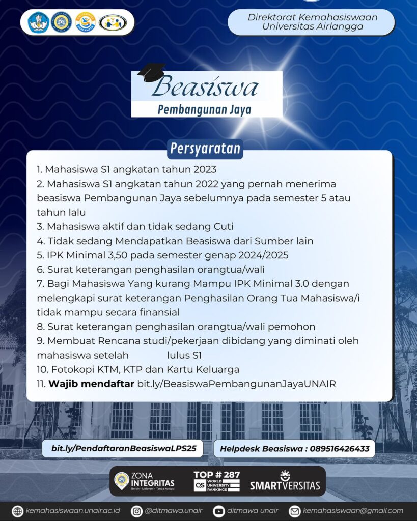 11. Wajib mendaftar bit.ly/BeasiswaPembangunanJayaUNAIR