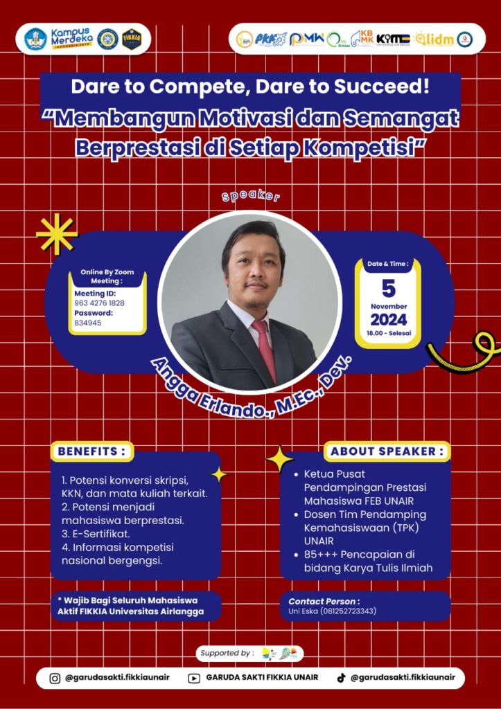 Jangan lewatkan seminar Motivation Building : Dare to Compete, Dare to Succeed yang akan membahas tuntas tentang kompetisi nasional bergengsi dan benefit yang akan diraih