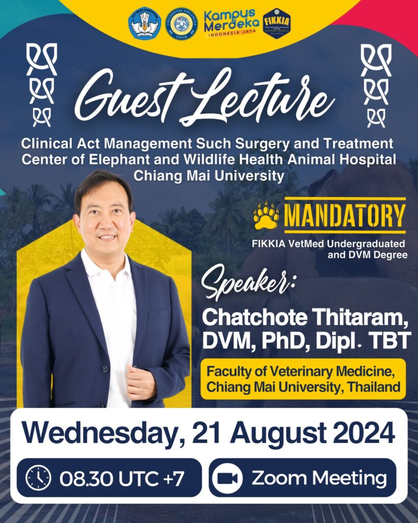INTERNATIONAL GUEST LECTURE – Topic: Clinical Act Management Such Surgery and Treatment Center of Elephant and Wildlife Health Animal Hospital Chiang Mai University