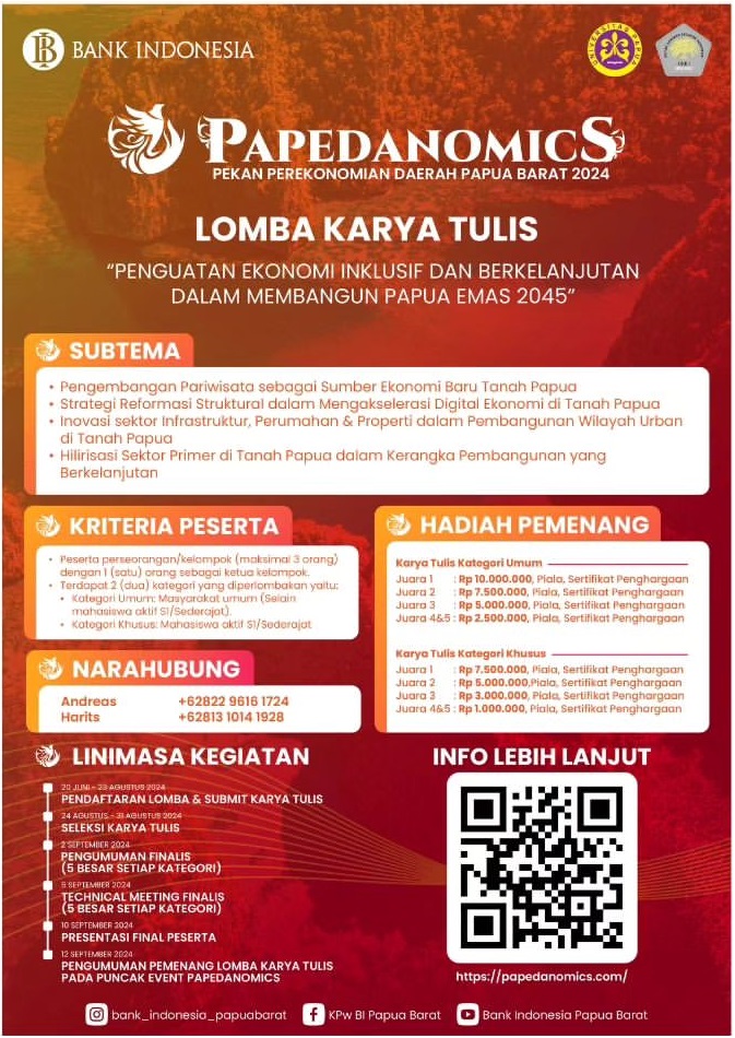 Lomba Karya Tulis : Penguatan Ekonomi Inklusif dan Berkelanjutan dalam Membangun Papua Emas 2045