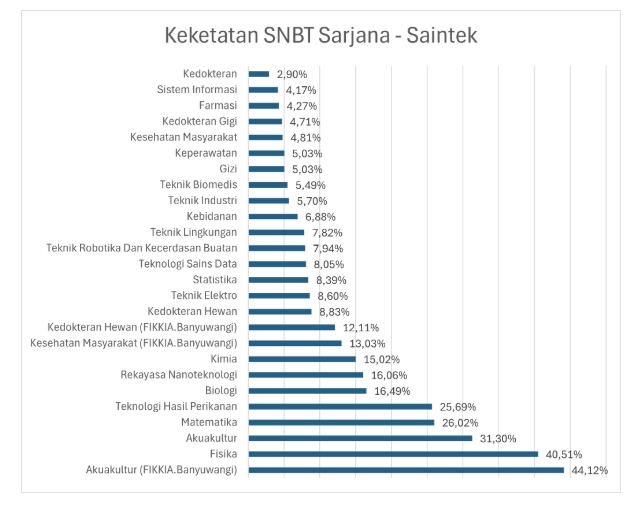 Melansir laman PPMB UNAIR dan SNPMB terkait keketatan pendaftaran SNBT. Di Tahun 2024, Dari 289 pendaftar program studi Kedokteran Hewan hanya 35 orang yang diterima dengan keketatan (12.11%). Keketatan Program Studi Kesehatan Masyarakat adalah 13.03% dengan 307 pendaftar dan hanya 40 mahasiswa yang dapat masuk. Program Studi S1 Akuakultur memiliki keketatan sebesar 44.12% dengan 68 pendaftar yang memperebutkan 30 kuota yang tersedia. Bagi Program Studi Kedokteran, tahun ini merupakan kali pertama membuka jalur SNBT. Proyeksi keketatan tidak dapat ditentukan. Tentu keketatan tersebut juga tidak dapat menjadi patokan utama keketatan tahun 2025, namun menjadi salah satu acuan untuk calon mahasiswa semakin belajar.