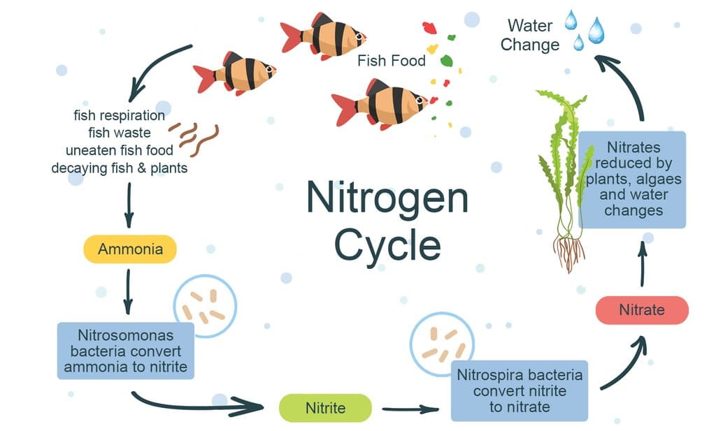 Proses daur nitrogen merupakan hal yang harus diperhatikan pembudidaya. Endapan sisa pakan dan kotoran menghasilkan ammonia dan nitrit yang bersifat racun bagi ikan. Kehadiran bakteri nitrifikasi dibutuhkan untuk mengurai amonia, nitrit menjadi nitrat. Konsentrasi ammonia dan nitrit yang rendah diperairan dapat menstimulasi pertumbuhan dan perkembangan ikan. Sedangkan bakteri pendegradasi bahan organik berperan untuk mengurai limbah organik sehingga jumlahnya limbah semakin kecil.