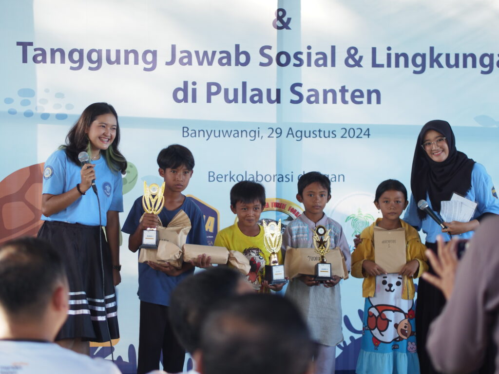 Pembukaan Eduwisata Pulau Santen diramaikan dengan riuh riang anak-anak yang mengikuti perlombaan. Mereka berkonsentrasi menyusun puzzle penyu dari barang bekas yang diolah menjadi ecobrick. Permainan ini tidak hanya menghibur, tetapi juga mendidik anak-anak tentang pentingnya daur ulang dan pengelolaan sampah. Para peserta yang berjumlah 20 orang tampak antusias dan bersemangat mengikuti permainan, terlebih karena adanya hadiah menarik bagi pemenang.