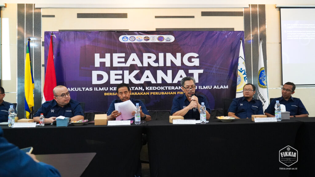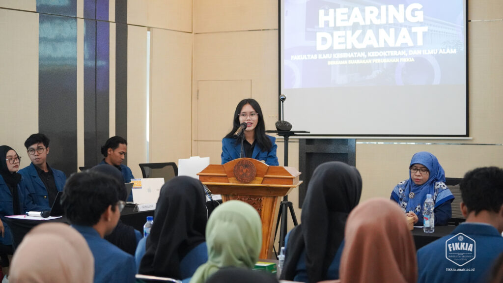 Dekan FIKKIA UNAIR bersama Wakil Dekan, Kepala Departemen, dan Ketua Program Studi melaksanakan kegiatan hearing bersama mahasiswa FIKKIA UNAIR (Selasa, 20/5/2025). Hadir pengurus BEM, BLM, serta organisasi atau himpunan mahasiswa di FIKKIA UNAIR.