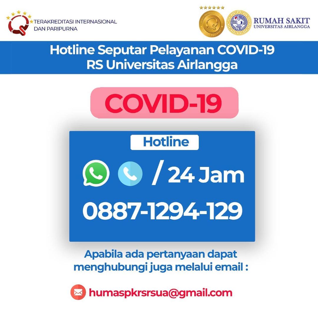 Hotline Seputar Pelayanan COVID-19 RS Universitas Airlangga Surabaya (24 jam)