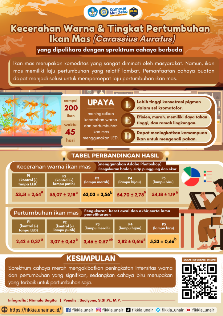 Kecerahan Warna dan Tingkat Pertumbuhan Ikan Mas (Carassius auratus) yang Dipelihara dengan Spektrum Cahaya Berbeda