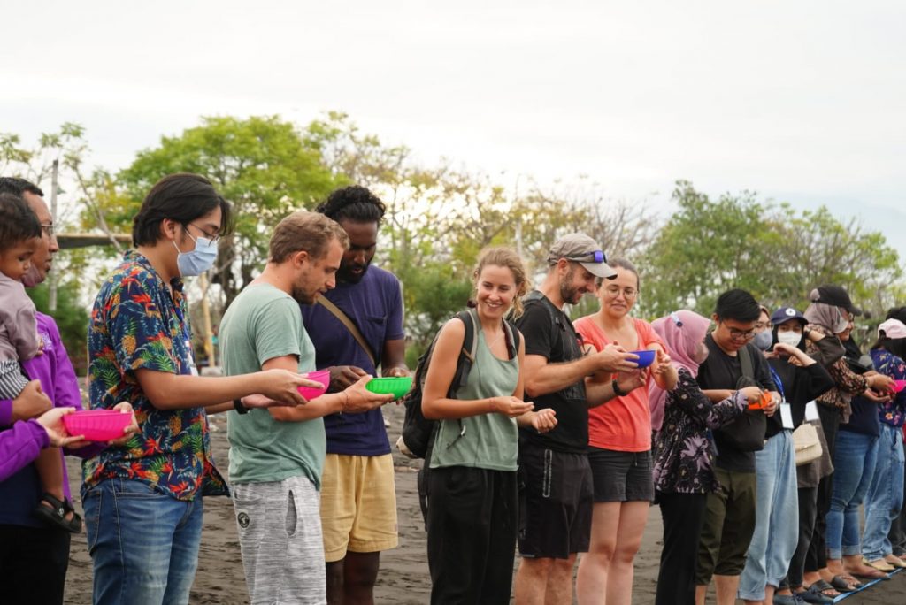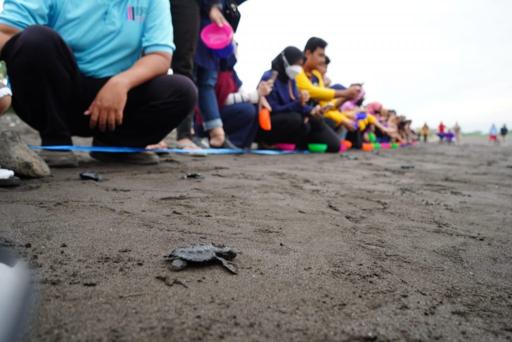 BERITA SIKIA- Mengawali Senin sore di bulan Agustus ini, Sekolah Ilmu Kesehatan dan Ilmu Alam bersama Banyuwangi Sea Turtle Foundation kembali melepasliarkan anak penyu atau tukik ke laut. Tukik yang dilepasliarkan merupakan hasil penetasan alat inkubator buatan (Intan) Box sebanyak 77 ekor tukik. Kegiatan pelepasliaran tukik ini adalah kegiatan kesekian kalinya diselenggarakan SIKIA Unair dan BSTF di lepas Pantai pulau Santen Banyuwangi yang menghadap ke Selat Bali bersama dosen, tenaga kependidikan, mahasiswa SIKIA, mahasiswa KKN Unair dan team BSTF.