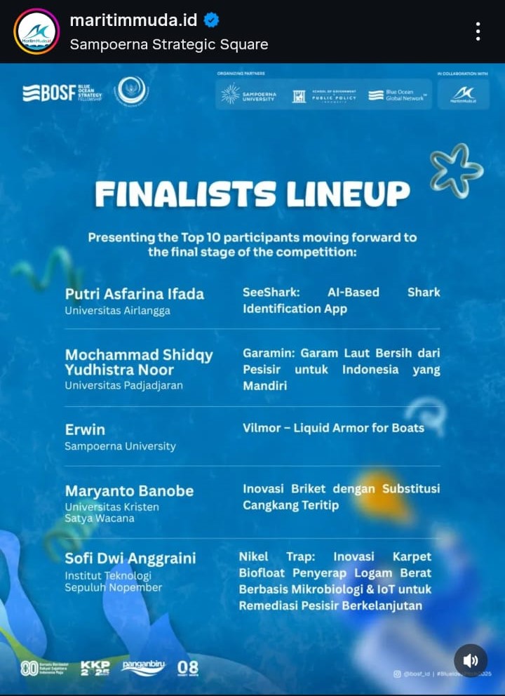 Panitia mengumumkan juara dilakukan secara hibrid pada Jumat (08/08/2025) di Sampoerna Strategic Square, Jakarta. Putri sendiri hadir daring melalui kanal zoom. Kesempatan bertemu dan berbicara langsung dengan Menteri Kelautan dan Perikanan menjadi momen penting bagi para peserta untuk memperjuangkan ide mereka agar bisa diadopsi sebagai inisiatif nasional.