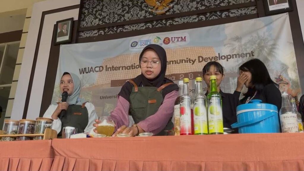 KABAR FIKKIA – Kegiatan Belajar Bersama Komunitas (BBK) Internasional yang diselenggarakan oleh Universitas Airlangga (UNAIR) bekerja sama dengan Universiti Teknologi Malaysia (UMT) memasuki hari ke-10 pelaksanaannya. Salah satu kegiatan menarik yang diadakan pada hari itu adalah pelatihan pembuatan jamu modern atau mocktail yang diikuti oleh mahasiswa UTM dari desa Banjar dan Licin serta ibu-ibu PKK. Demo pembuatan mocktail yang berlangsung Sabtu (01/03/2025) di kantor Balai Desa Banjar kec Licin Banyuwangi.