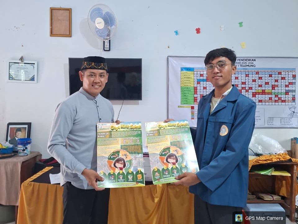 Sebagai penutup kegiatan, mahasiswa PKL menyerahkan poster edukasi kesehatan kepada guru SDN 1 Telemung Budi S.Pd. Poster tersebut diharapkan dapat menjadi media pengingat dan sarana edukasi lanjutan bagi siswa mengenai pentingnya memilih makanan sehat.