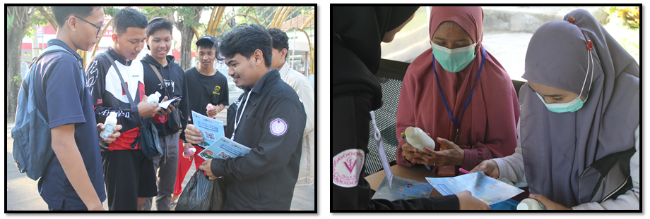 Pembagian susu kambing di Taman Blambangan (kiri) dan RSUD Blambangan (kanan). Foto: dokumentasi PPK HMKH x HIMAKUA Desa Telemung