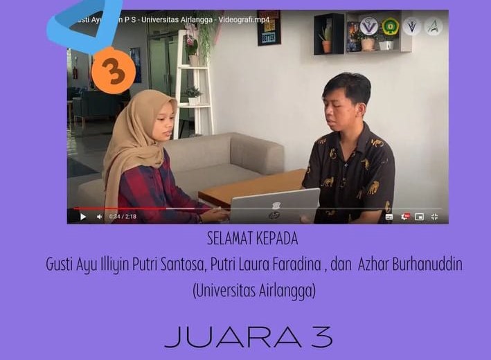 Dalam kategori videografi, mahasiswa SIKIA UNAIR berhasil menyabet Juara 1 dan 3. Peraih juara pertama tersebut diperoleh oleh tim yang beranggotakan Januar Firmansyah (Kedokteran Hewan, Angkatan 2020), Farodina Azka Zhafira (Kedokteran Hewan, 2020), dan Muhammad Alif Rifqi Firmansyah (Kedokteran Hewan, Angkatan 2021). Sedangkan juara ketiga berhasil diraih oleh tim yang terdiri dari Gusti Ayu Illiyin Putri Santosa (Kedokteran Hewan, 2021), Putri Laura Faradina (Kedokteran Hewan, Angkatan 2021), dan Azhar Burhanuddin (Kedokteran Hewan, 2021). Secara umum, setiap karya tersebut menerangkan terkait definisi, tata cara penularan, hingga pencegahan dari infeksi rabies yang sedang merajalela dalam beberapa wilayah di Indonesia.