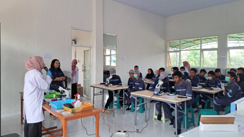 KABAR FIKKIA – Program Studi Akuakultur Fakultas Ilmu Kesehatan, Kedokteran dan Ilmu Alam (FIKKIA) Universitas Airlangga Banyuwangi telah mengadakan kegiatan pengabdian masyarakat pada hari Rabu (13/11/2024). Kegiatan ini dilakukan di SMK Ihya Ulumudin, Singojuruh dengan tema Identifikasi Bakteri pada Ikan Menggunakan Metode Mikroskopis. Kegiatan dihadiri oleh 80 siswa kelas 10, 11, dan 12 jurusan Agribisnis Perikanan Air Tawar. Kegiatan pengabdian masyarakat dilakukan untuk memberikan wawasan dan pengetahuan tentang identifikasi bakteri pada ikan dengan metode mikroskopis.