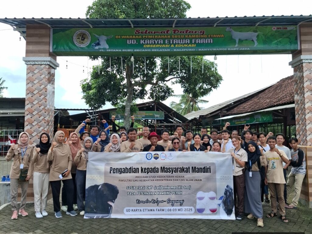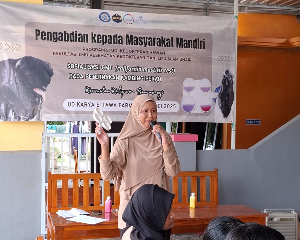KABAR FIKKIA – Mastitis subklinis menjadi momok yang menghantui peternak kambing perah. Penyakit yang menyerang kelenjer susu tersebut dapat menurunkan produksi susu, serta kesakitan luar biasa pada ambing ternak. Mencegah hal itu terjadi, Prodi Kedokteran Hewan FIKKIA UNAIR mengadakan pelatihan deteksi dini mastitis subklinis. Pelatihan diikuti oleh 15 peternak kambing perah Desa Telemung, Kalipuro, Banyuwangi, Jumat (09/05/2025) di UD Karya Etawa Farm. Mastitis subklinis merupakan tipe mastitis yang tidak menunjukkan gejala klinis.