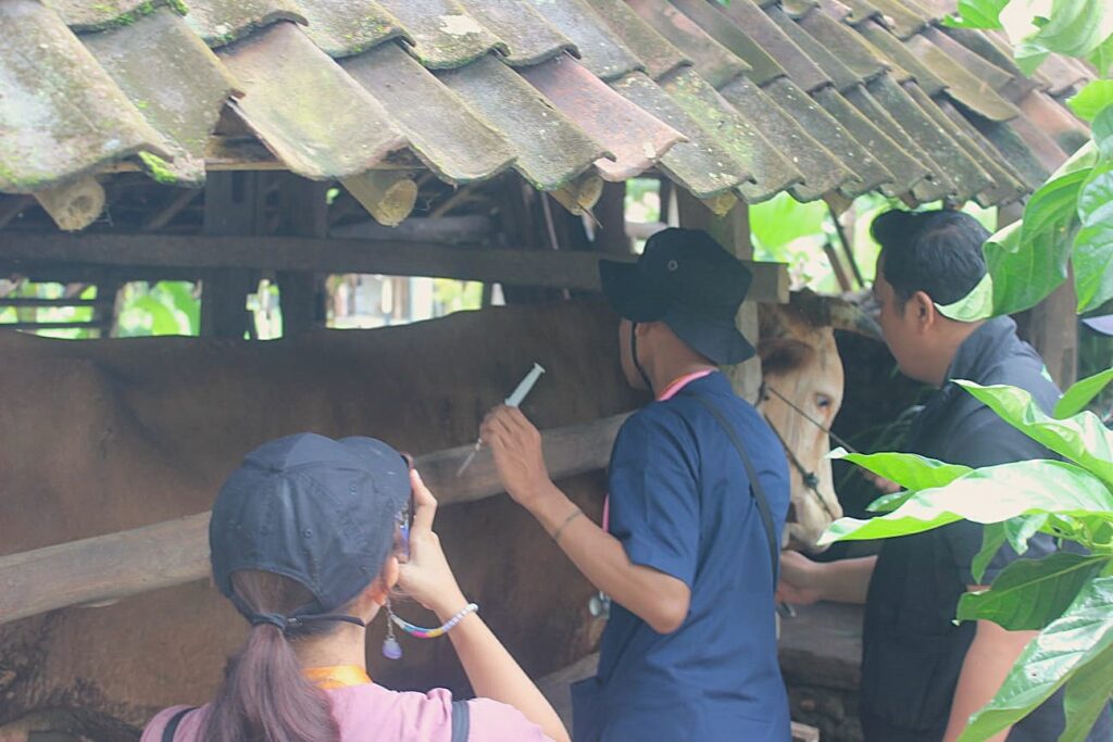 Dokter hewan dan tenaga medis veteriner melakukan vaksinasi sapi milik warga. Sumber: Istimewa