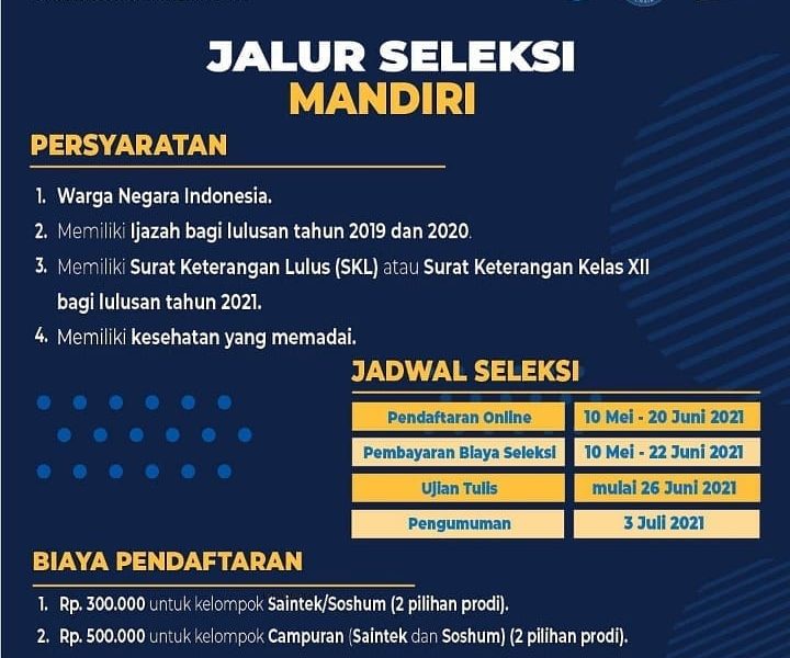 Read More[ad_1] #Repost @ppmbunair … Hai Kawan pendaftaran Jalur Mandiri (Reguler) sudah dibuka nih… Pendaftaran dibuka mulai tanggal 10 Mei – 20 Juni 2021 Pendaftaran dilakukan secara online di pendaftaran.unair.ac.id Berbeda dengan tahun sebelumnya, seleksi ujian mandiri dilakukan secara OFFLINE di Universitas Airlangga Untuk Informasi lebih lanjut bisa dilihat di ppmb.unair.ac.id #sarjana #MandiriReguler #UNAIR #UniversitasAirlangga #UnairHEBAT […]