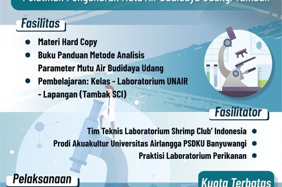 Read More[ad_1] *Training laboratorium tambak udang* PELATIHAN PENGUKURAN MUTU AIR BUDIDAYA UDANG/TAMBAK 20-25 Mei 2021 Lokasi: UNAIR PSDKU Banyuwangi Quota terbatas!! Program Studi S1 Akuakultur PSDKU UNAIR Banyuwangi . Jl. Wijaya Kusuma No. 113, Kec. Giri, Kabupaten Banyuwangi, Telp : 0333 – 417788, Fax : 0333 – 428890 . Website: https://psdku.unair.ac.id/ #belajarakuakultur #akuakultur #akuakulturunairbwi #banyuwangi #unairbwi […]