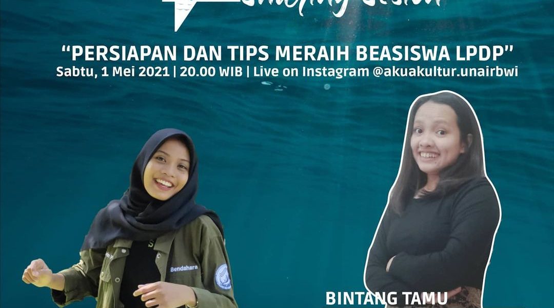 Read More[ad_1] [Aquaculture Sharing Session : live on instagram] “PERSIAPAN DAN TIPS MERAIH BEASISWA LPDP” Sabtu, 1 MEI 2021 20.00 WIB Instagram live @akuakultur.unairbwi BINTANG TAMU Maria Agustina Pardede, S.Pi. – @mariaagustinapardede ?Alumni @akuakultur.unairbwi Angkatan 2014 ?Peraih Beasiswa LPDP 2019 ?Mahasiswa S2 Ilmu Akuakultur IPB University HOST Syavin Pristiwahyuning – @syavinpr ?Mahasiswa Berprestasi Fakultas Perikanan UNAIR […]