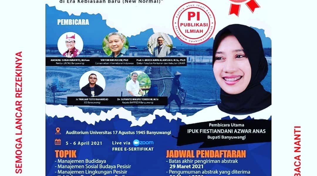 Read More[ad_1] *”SIMPOSIUM NASIONAL PERIKANAN DAN CALL FOR PAPER “* Kolaborasi antara Fakultas Perikanan dan Kelautan Universitas Airlangga serta Fakultas Pertanian dan Perikanan Universitas 17 Agustus 1945 Banyuwangi *PENGUATAN EKONOMI KABUPATEN BANYUWANGI MELALUI PENGELOLAAN SUMBERDAYA PESISIR SECARA BERKELANJUTAN DI ERA KEBIASAAN BARU (NEW NORMAL)* ? Senin – Selasa, 5 – 6 April 2021 ? Auditorium Universitas […]