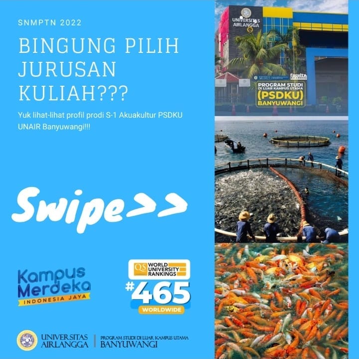 Prodi S1 Akuakuktur PSDKU UNAIR Banyuwangi adalah pilihan yang tepat.