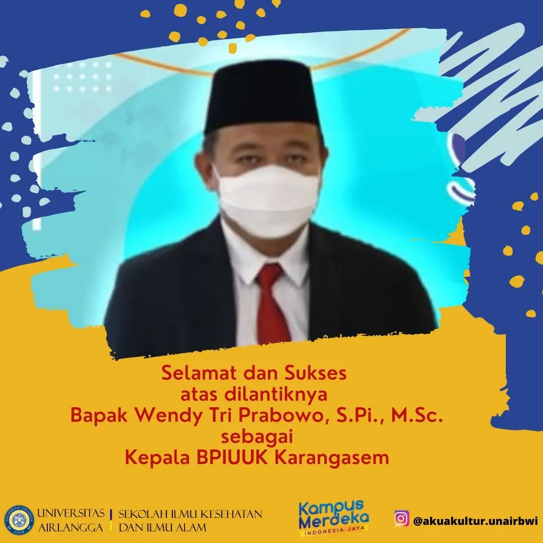 Selamat dan sukses atas dilantiknya Bapak Wendy Tri Prabowo S.Pi., M.Sc. sebagai kepala Balai Produksi Induk Udang Unggul dan Kekerangan (BPIUUK) Karangasem, semoga dapat mengemban amanah dengan baik.