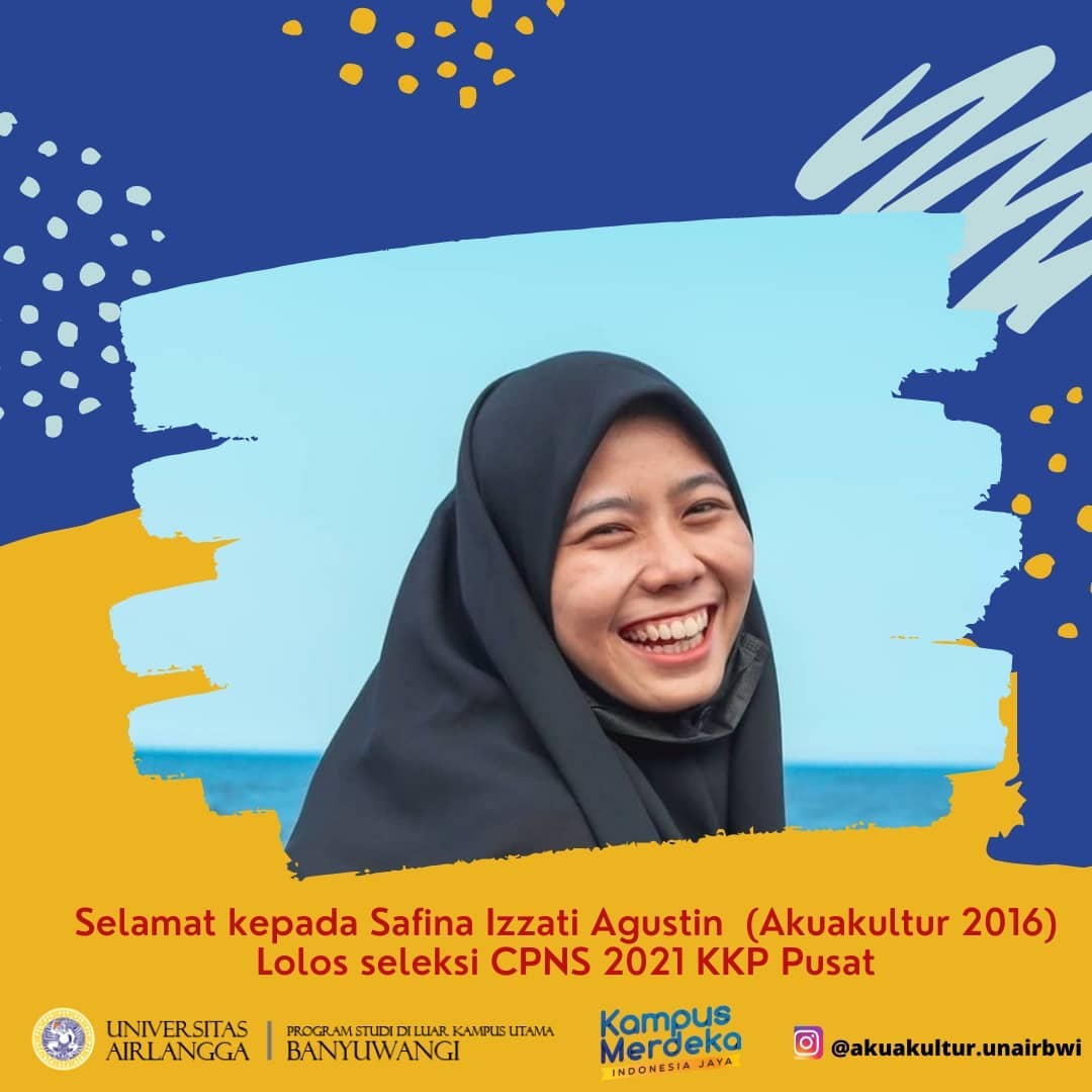 Selamat kepada @safinaia_ alumni @akuakultur.unairbwi angkatan 2016 yang telah dinyatakan lolos seleksi CPNS 2021 dengan formasi Analis Perikanan Budidaya, Direktorat Jendral Budidaya, Direktorat Perbenihan, Kementerian Kelautan dan Perikanan