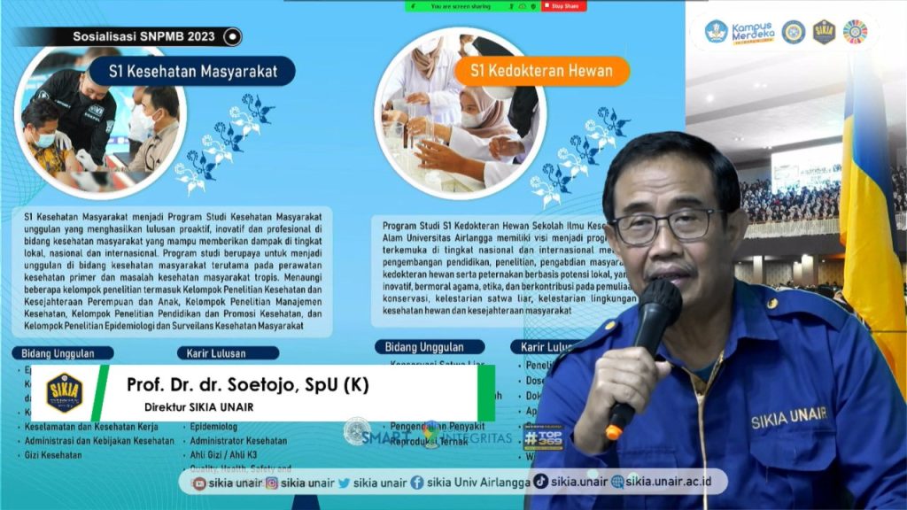 Prof. Dr. Soetojo, dr., Sp.U. (K) selaku direktur SIKIA UNAIR hadir untuk memberikan sambutan serta sekaligus memperkenalkan SIKIA Universitas Airlangga kepada para pejuang PTN 2023.