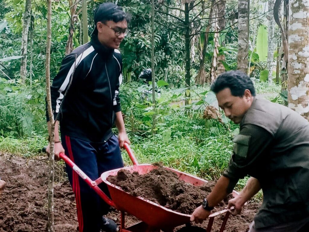 Kegiatan upgrading tidak hanya diwarnai dengan sesi game dan kebersamaan, melainkan juga dilaksanakan dalam bentuk aksi nyata. Seluruh peserta upgrading dibagi ke dalam beberapa kelompok dengan tugas yang berbeda. Ada kelompok yang membersihkan mushola dan area Sendang Seruni, sementara kelompok lainnya membersihkan lahan dan melakukan penanaman tanaman obat.