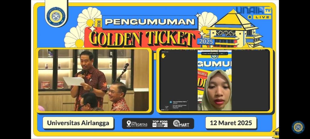 KABAR FIKKIA – Universitas Airlangga (UNAIR) kembali menggelar momen yang dinantikan ribuan siswa berprestasi dari seluruh Indonesia. Pada Rabu, (12/ 03/ 2025), UNAIR secara resmi mengumumkan seleksi kandidat penerima Golden Tiket bagi siswa SMA berprestasi yang diterima tanpa tes tambahan. Pengumuman tersebut disampaikan secara hybrid Hall Lantai 1, Kantor Manajemen UNAIR yang dapat disimak juga melalui kanal streaming Youtube UNAIR TV.