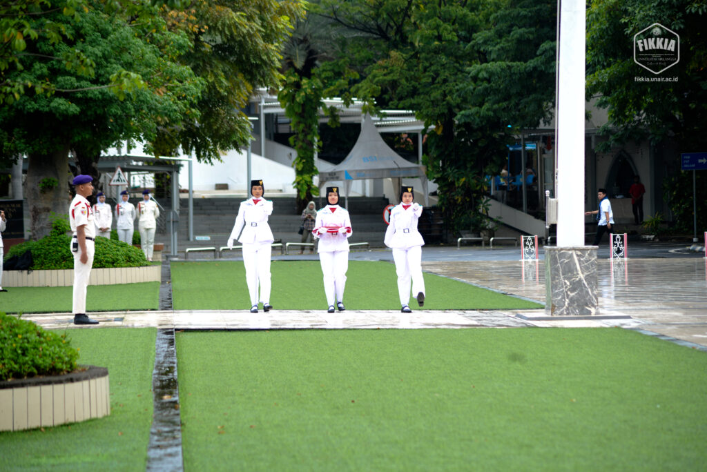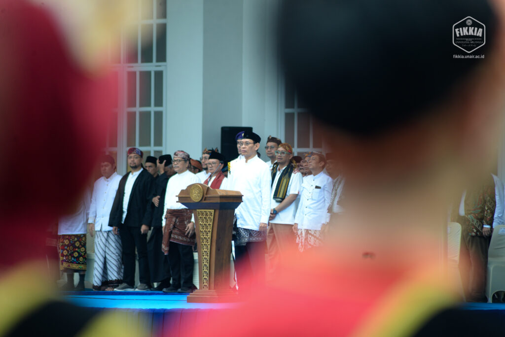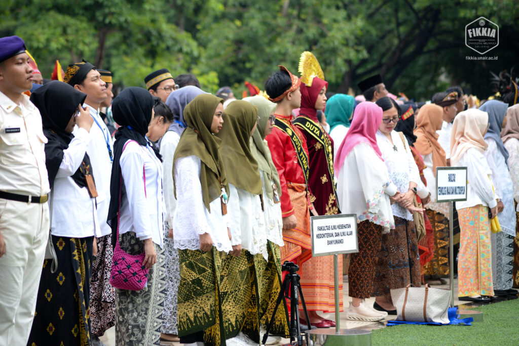 KABAR FIKKIA – Civitas akademik Fakultas Ilmu Kesehatan, Kedokteran, dan Ilmu Alam (FIKKIA) ikuti upacara peringatan Hari Pendidikan Nasional di halaman Rektorat Universitas Airlangga Kampus Merr-C Surabaya. Upacara pada Jumat (02/05/2025) diikuti oleh perwakilan dosen dan tenaga kependidikan dari seluruh fakultas, unit, dan bidang di kampus Universitas Airlangga. Rintik hujan pagi itu tidak menyurutkan semangat peserta upacara. Berbalut pakaian adat daerah, peserta mengikuti jalannya upacara dengan khidmat.